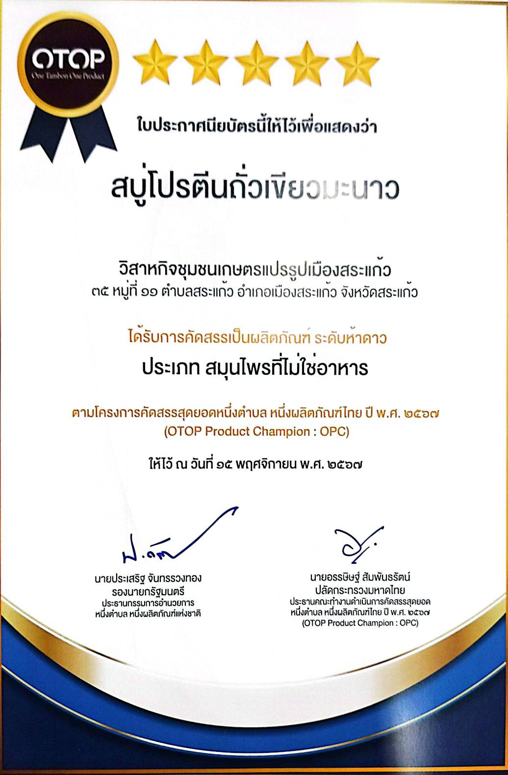 ใบประกาศเกียรติคุณ