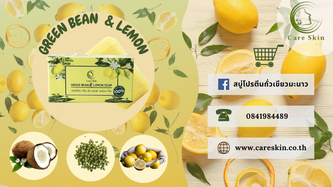 “ สบู่น้ำมันมะพร้าวสูตรโปรตีนถั่วเขียวมะนาว จาก Care Skin “