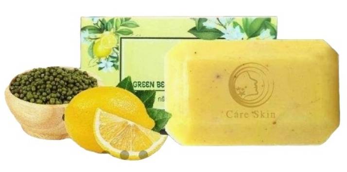 “สบู่น้ำมันมะพร้าวสูตรโปรตีนถั่วเขียวมะนาว” จาก Care Skin ใช้ล้างหน้าและอาบน้ำได้ในก้อนเดียว มีส่วนผสมของน้ำมันมะพร้าวสกัดเย็น ช่วยรักษาความชุ่มชื้น ลดอาการผิวแห้งแตก ลดรอยหมองคล้ำ คืนความเนียนนุ่มให้ผิว มีสารสกัดถั่วเขียว ที่อุดมไปด้วยวิตามินอี และสารสกัดมะนาว มีคุณสมบัติเป็นไวท์เทนนิง ช่วยให้ผิวขาวใส ลดความมัน จุดด่างดำจางลง