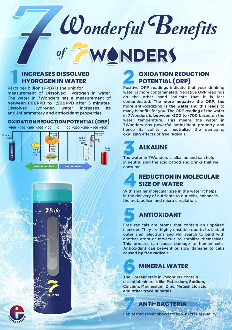 ㆍ เป็นน้ำบริสุทธิ์ สะอาด ปลอดภัย ㆍมีแร่ราตุหลักและรองอย่างน้อย 12 ชนิด ㆍมีความเป็นด่าง ค่า pH 7.8 ㆍมีโครงสร้างโมเลกุลขนาดเล็ก ㆍ ค่า ORP ไม่เกิน 100 ㆍมีประจุไฟฟ้าสูง